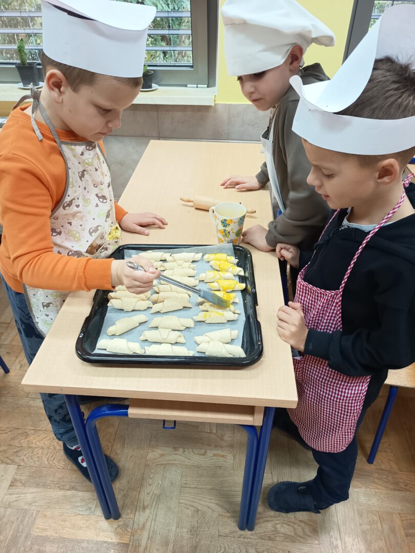 Dan smo započeli pokazivanjem snopa raži i ječma. Od snopa raži i ječma došli smo do pojma mlina, pa do brašna i recepta. Nakon objašnjenja učenici su dobili tijesto da mogu oblikovati klipiće. Pridružio nam se preko aplikacije ZOOM – a učenik Andro koji je zbog bolesti morao ostati kod kuće. Andro je u svom domu a ostali učenici su se u razredu žurno prihvatili oblikovanja tijesta koje su dobili. Nakon oblikovanja premazali su klipiće jajcem, posipali kuminom i odnijeli na pečenje.