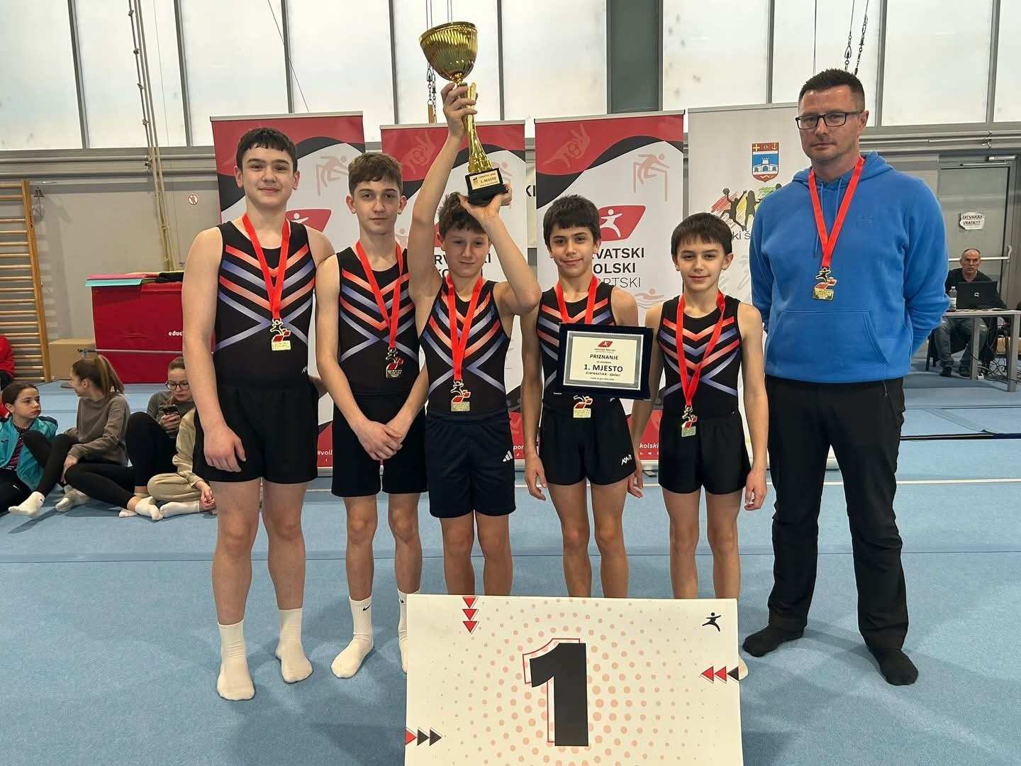 Muška ekipa naše škole ostvarila je izniman uspjeh – 1. mjesto u konkurenciji osam ekipa. Time su naši gimnastičari uspješno obranili prošlogodišnje zlato.
