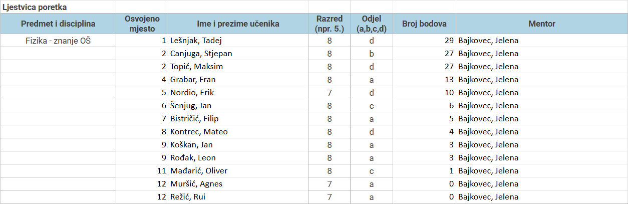 Nakon revizije županijskog povjerenstva 9.2.2026. učenici Tadej Lešnjak, Stjepan Canjuga i Maksim Topić pozvani su na županijsku razinu natjecanja iz fizike koja će se održati 26.2.2026.