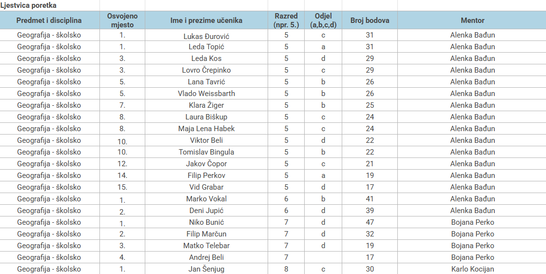 U utorak, 27.1.2026. godine održano je školsko natjecanje iz geografije. Na natjecanju je sudjelovalo 14 učenika 5. razreda, 2 učenika 6. razreda, 4 učenika 7. razreda i 1 učenik 8. razreda. Čestitamo svima na ostvarenom uspjehu.