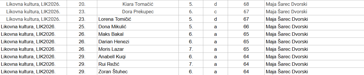 Dana 2. veljače 2026. godine održana je školska razina natjecanja iz Likovne kulture za učenike od 5. do 8. razreda.