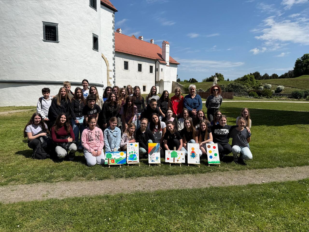 Druženje je započelo zanimljivim igrama upoznavanja koje su pomogle učenicima da se lakše opuste i započnu razgovor s vršnjacima iz drugih škola, a ubrzo nakon toga uzeli su u ruke kistove i boje. Poput pravih umjetnika u velikom ateljeu na otvorenom na štafelaje su postavili platna i počeli stvarati svoja mala remek-djela inspirirana prirodom. Motivi njihovih slika bili su povezani s našim planetom i dječjim pravima, a rezultate njihove kreativnosti i mašte možete detaljnije pogledati u fotogaleriji.
